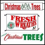 Our Christmas tree banners are the perfect way to let the community know you are selling holiday trees. These banners are pre printed in vibrant eye catching colors and graphics and are designed to ensure they catch the eye of drive by traffic and walking patrons.